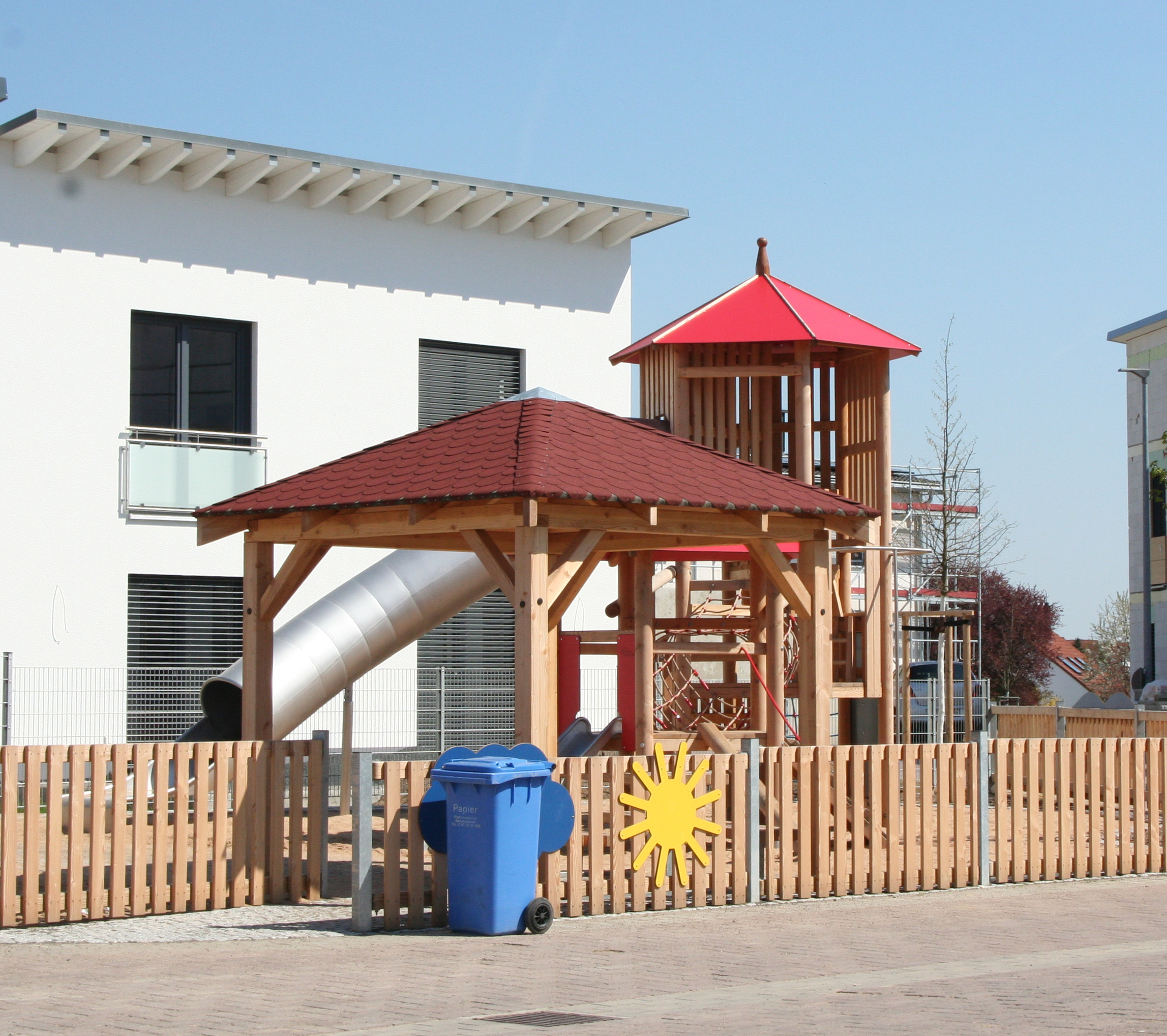 Der Quartiersspielplatz ist mit einer Kombinations-Spielanlage ausgestattet, die sowohl einen Bereich für Kleinkinder