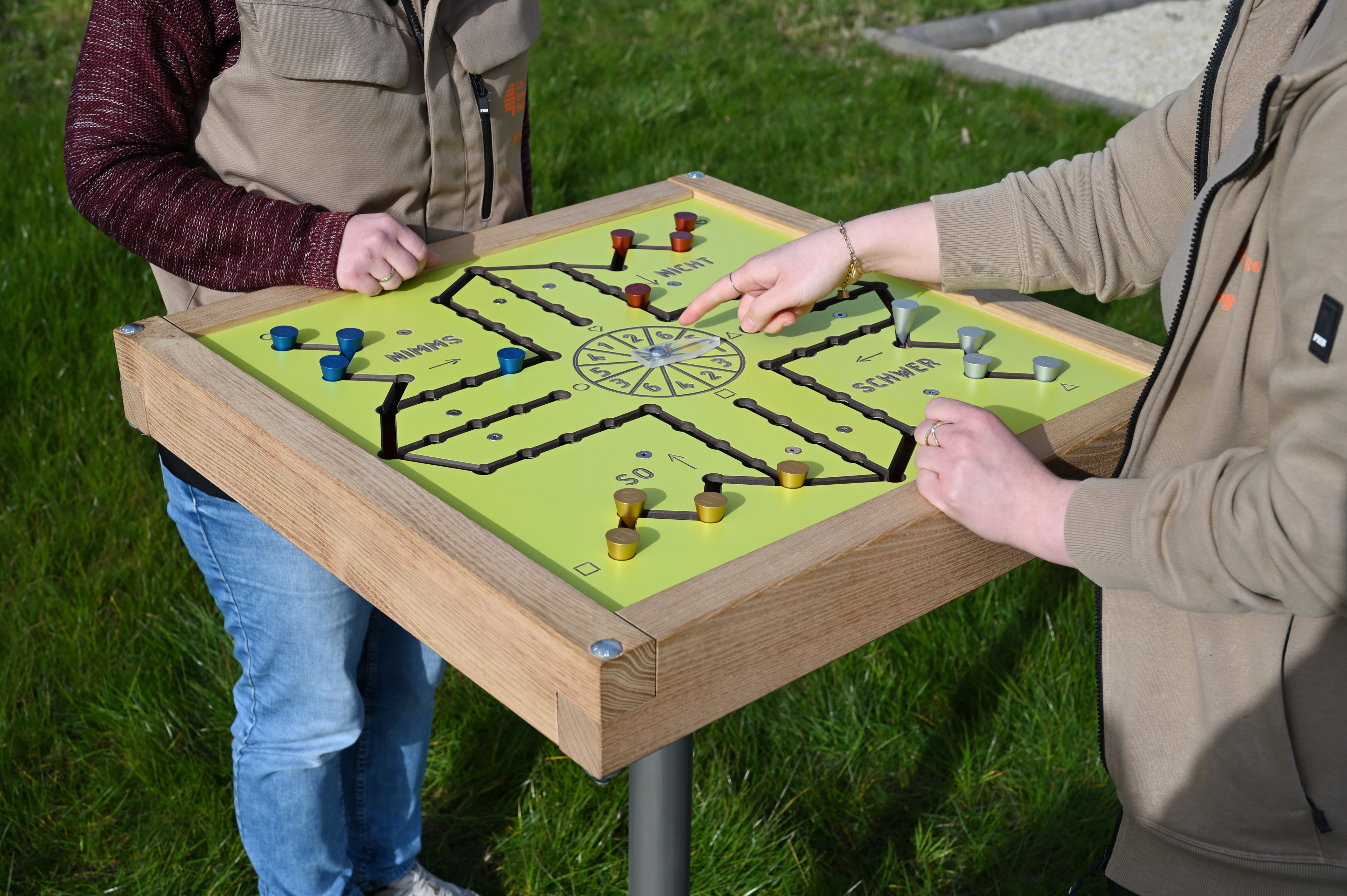 Das Outdoor-Spiel hat bewegliche, nicht herausnehmbare Spielfiguren und