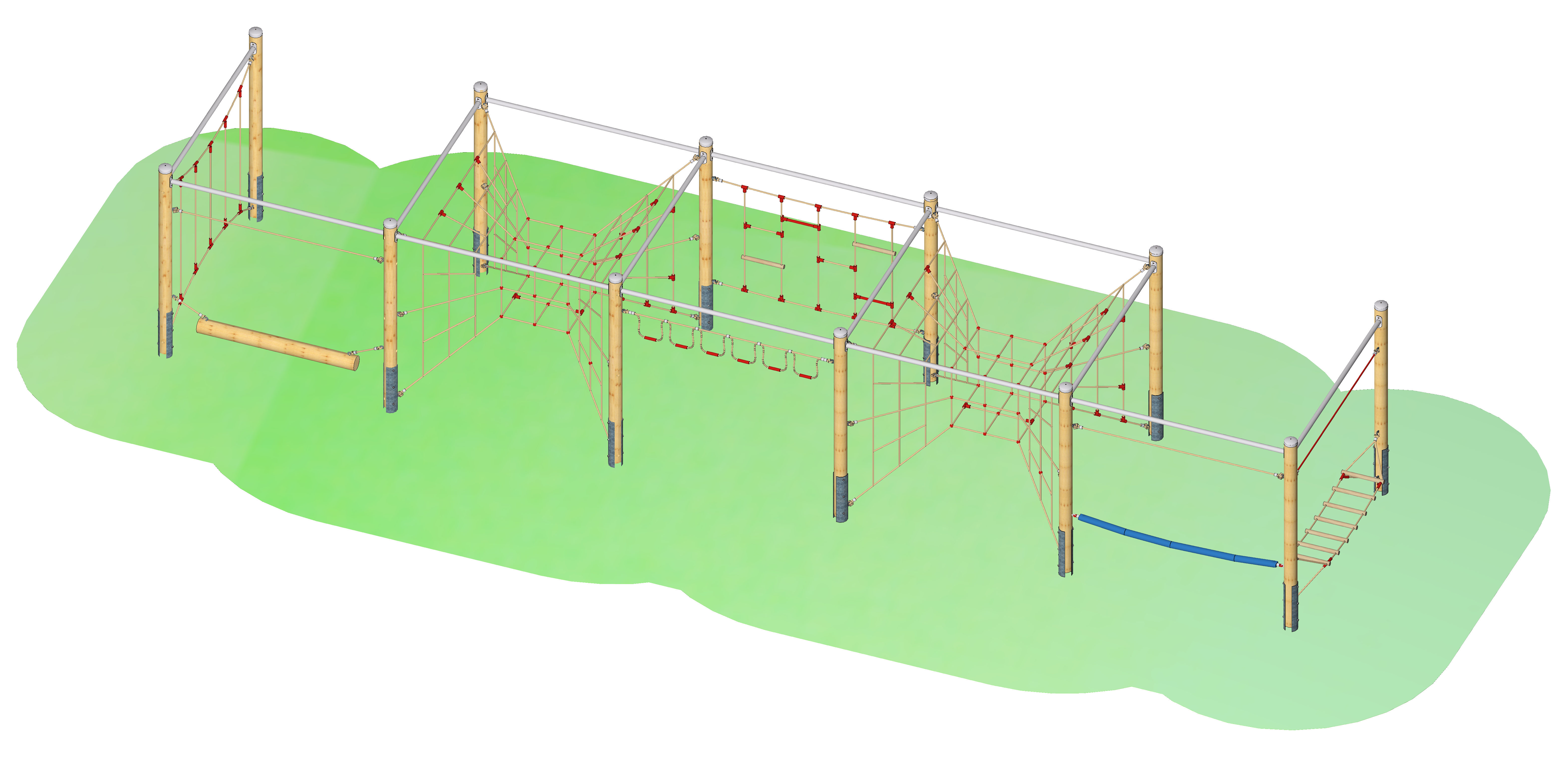 | Montageumfang ohne Fundamentarbeiten | 2 Personen x 6,0 Stunden + 2. Anfahrt zum Einhängen der Kletterelemente 3,0 Stunden |