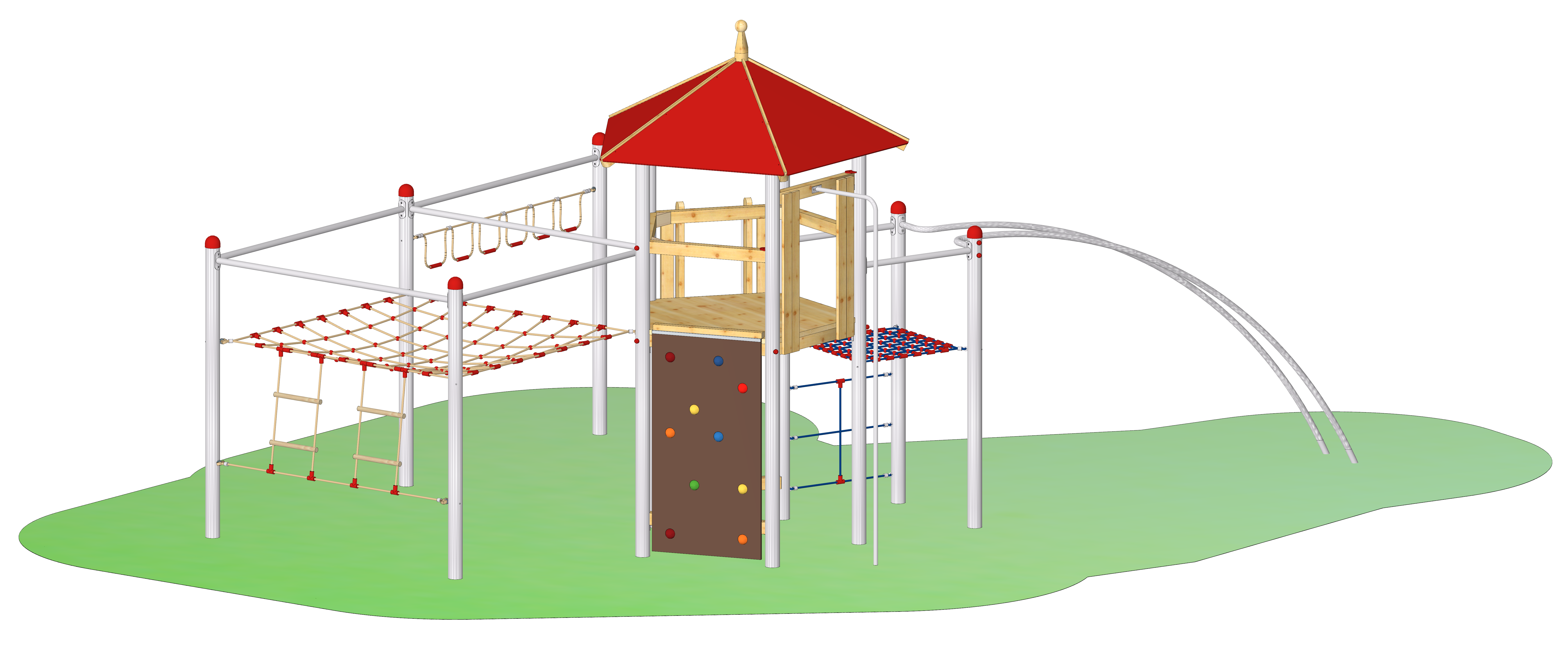 Seilparcours-Spielkombination "Mohnstraße" mit Edelstahlpfosten