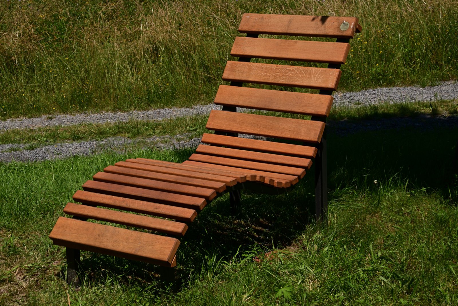 Auf dem Sonnensofa genießt man Entspannung, Erholung und die Natur. Die Liegefläche besteht aus aus Eiche (geölt), die Unterkonstruktion ist aus Stahl, die Oberfläche feuerverzinkt und zusätzlich pulverbeschichtet (DB 703).