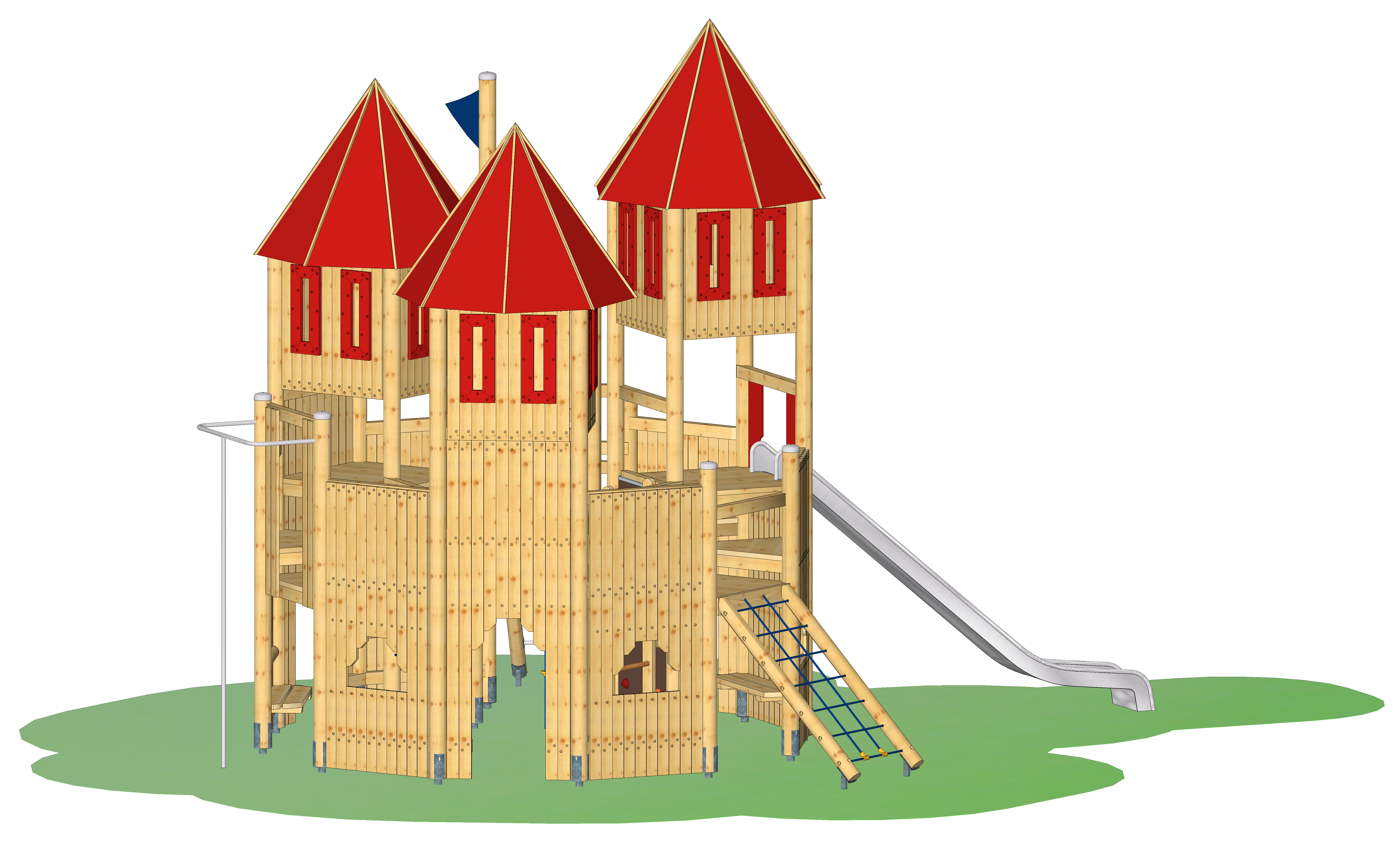 Spielkombination aus dem "System 110" inkl. Pfostenschuhen und Abdeckkappen