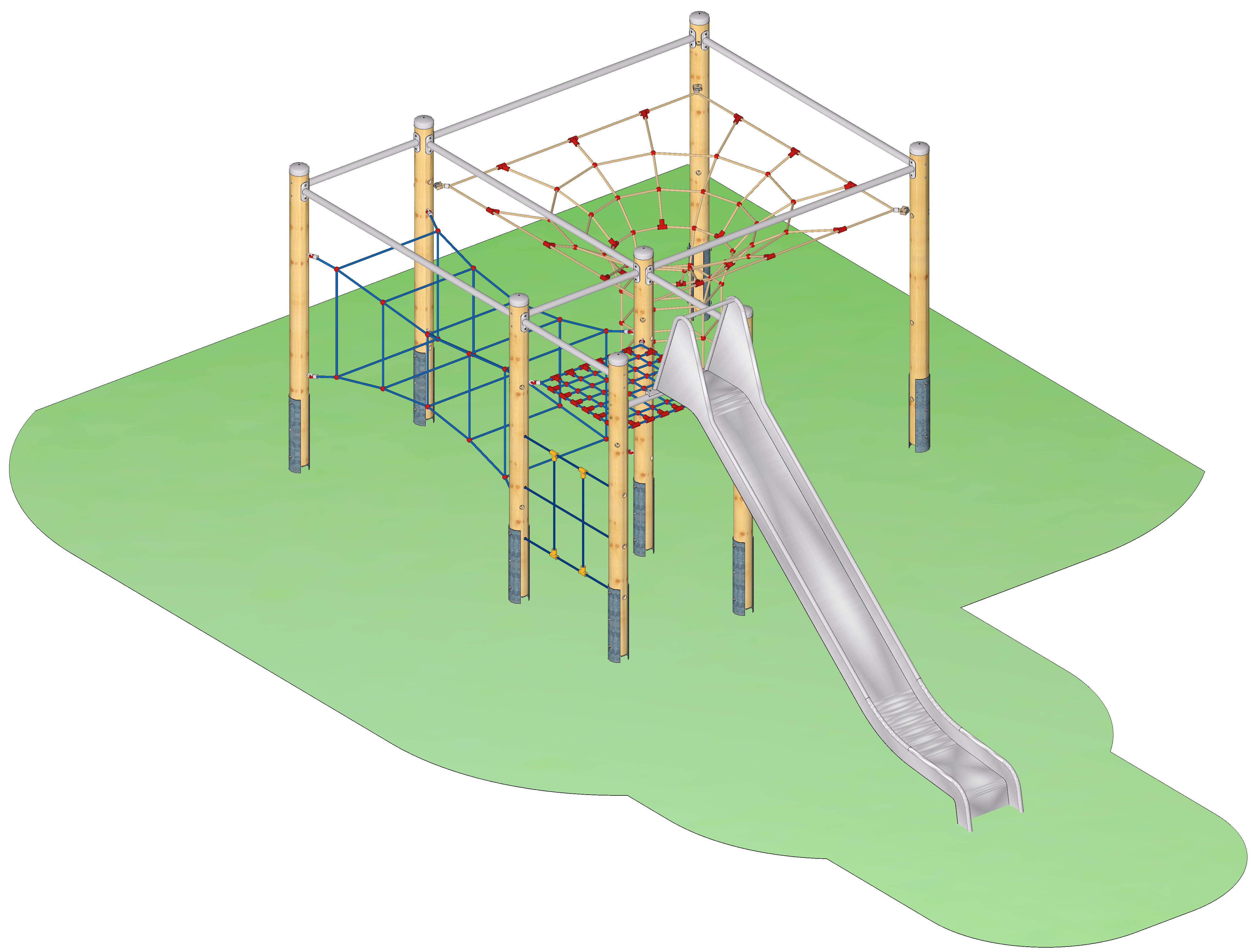 | Montageumfang ohne Fundamentarbeiten | 2 Personen x 5,0 Stunden + 2. Anfahrt zum Einhängen der Kletterelemente 4,0 Stunden |