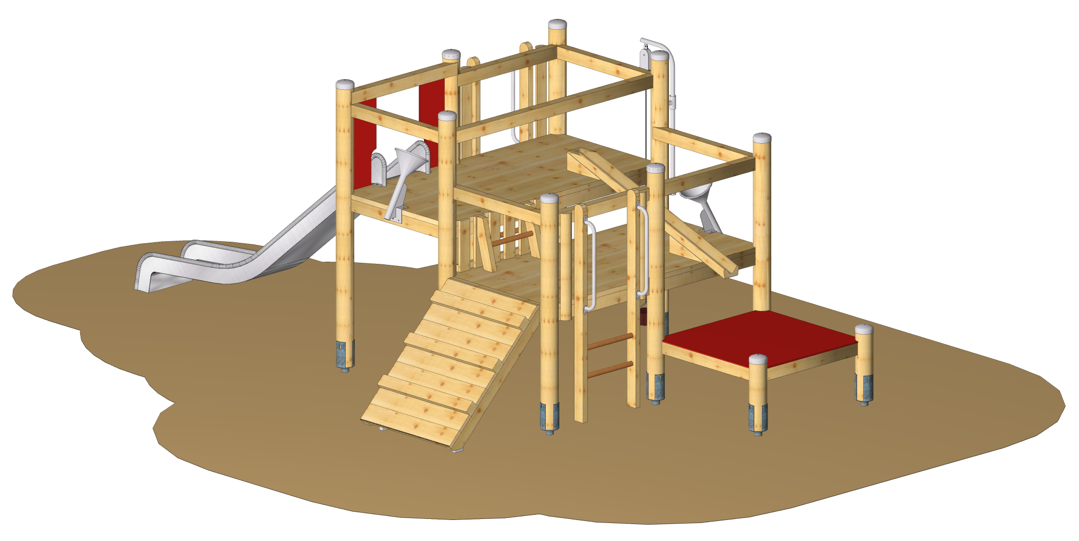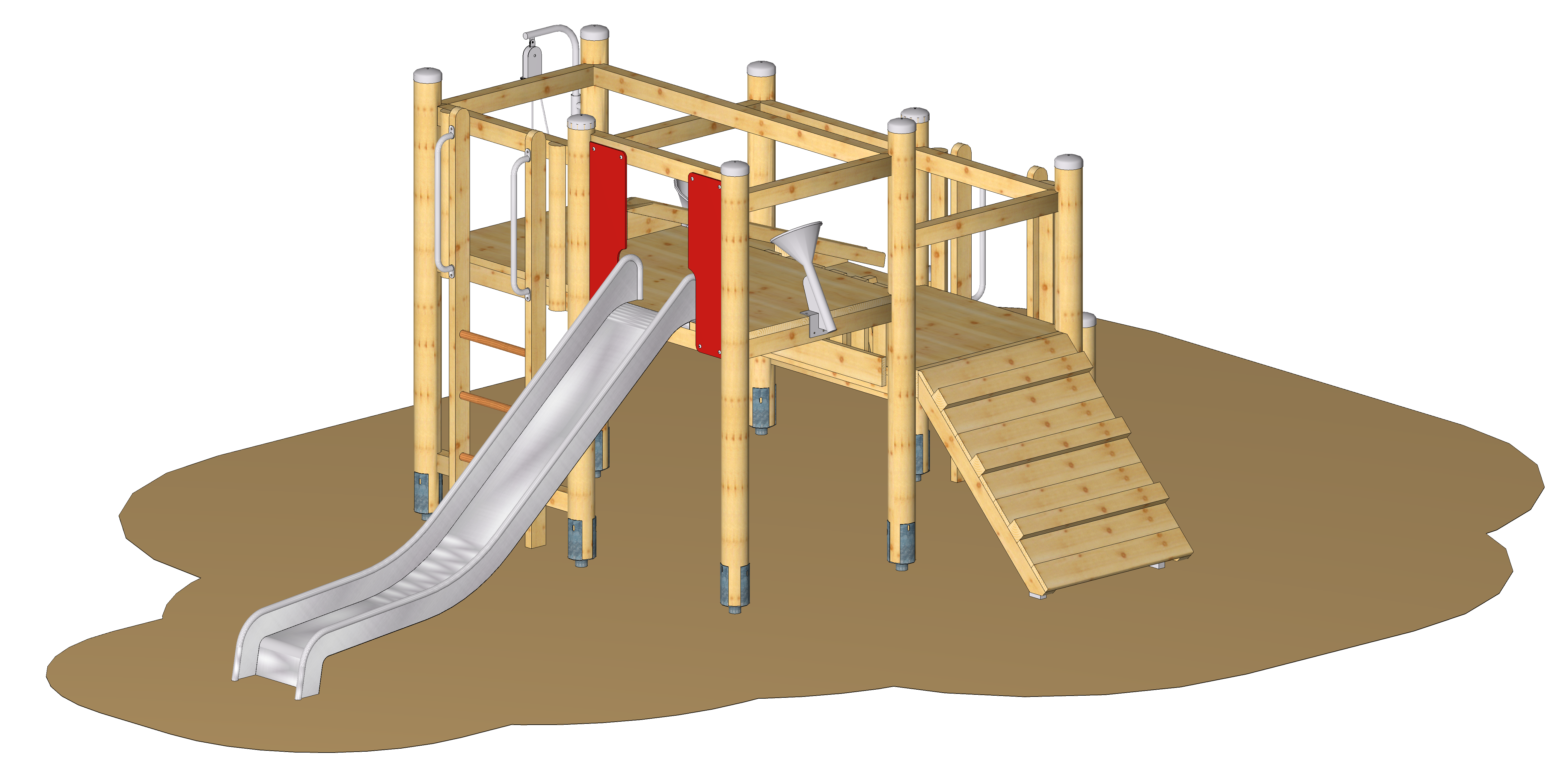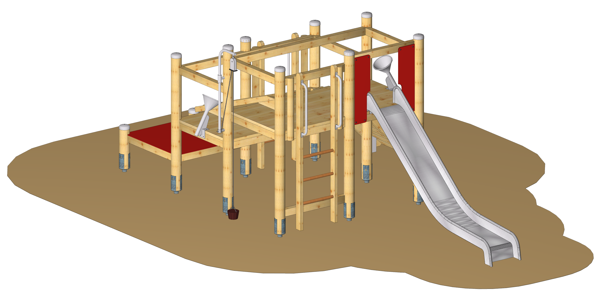 Spielgerät inkl. Pfostenschuhen und Abdeckkappen