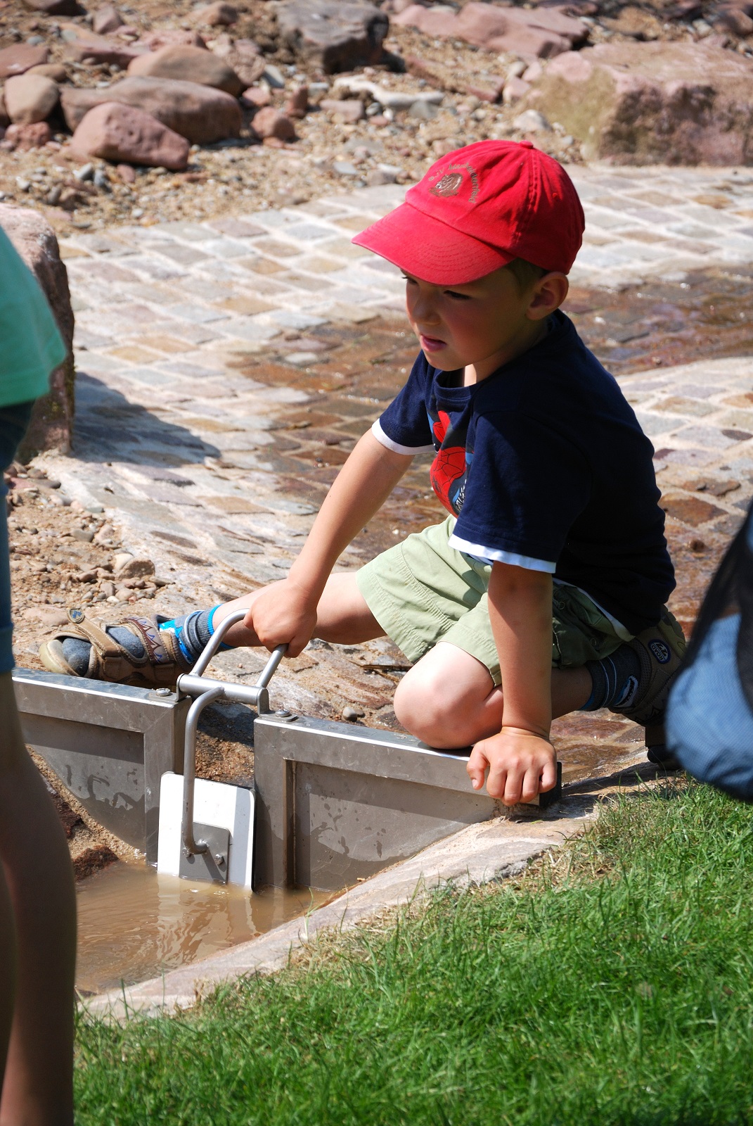 In einem rundum von Bäumen beschatteten Spielbereich finden die kleinen Besucher des Freibades vielseitige Angebote zum