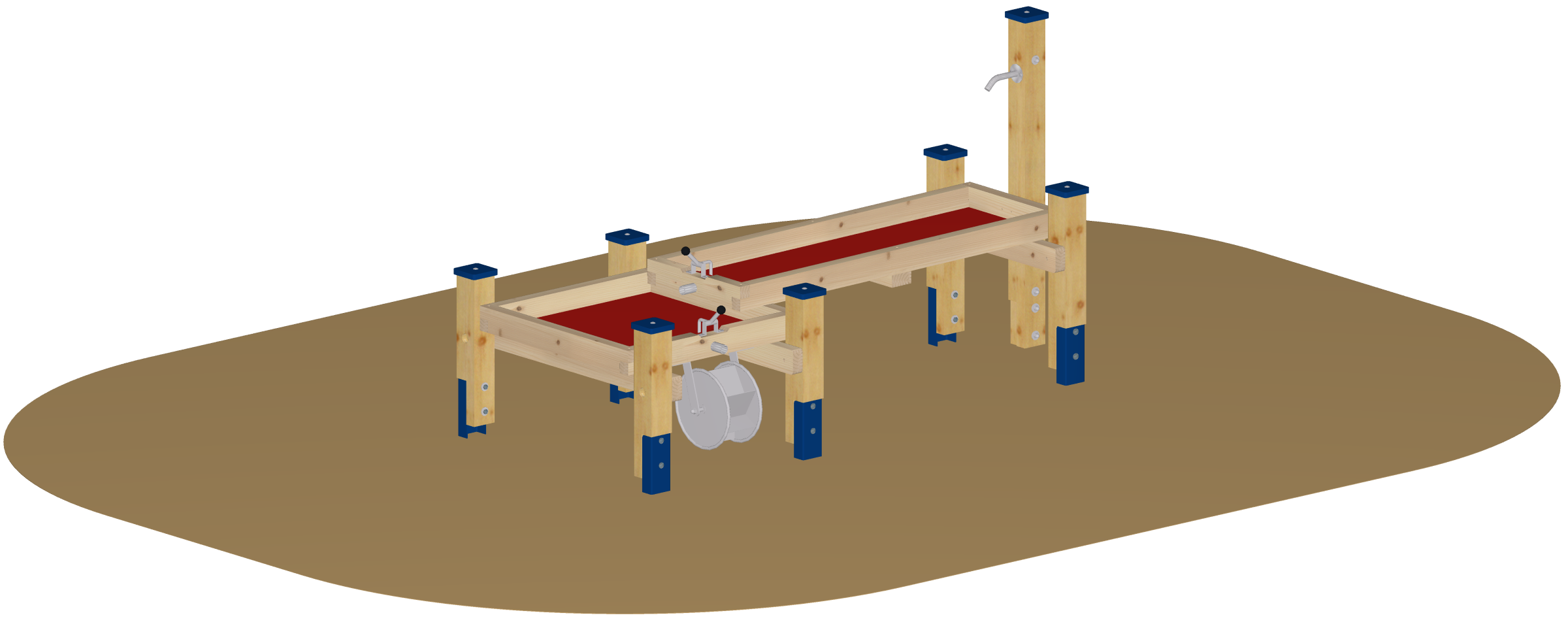 Wasserzuführung als Zubehör erhältlich: Wassersäule oder Pumpe mit Speier (nicht im Lieferumfang des Matschlabores enthalten).