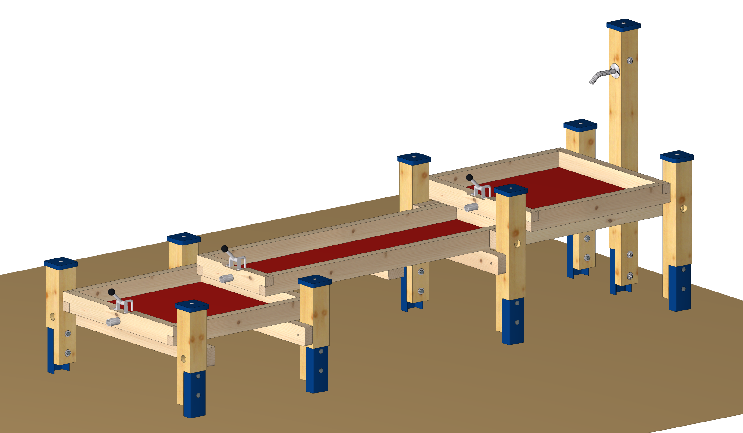 Wasserzuführung als Zubehör erhältlich: Wassersäule oder Pumpe mit Speier (nicht im Lieferumfang des Matschlabores enthalten).