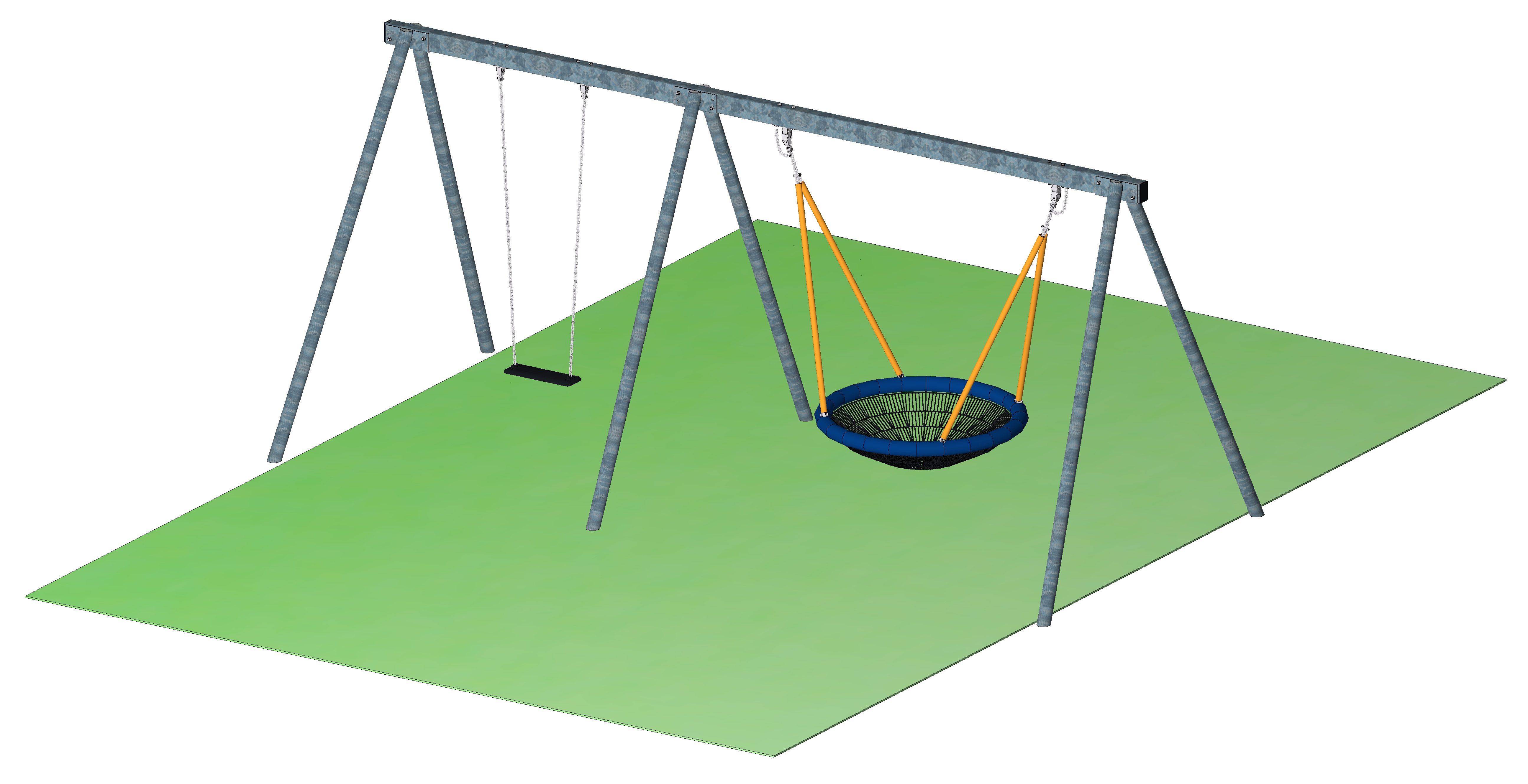 Nestschaukel mit 1-Sitzer-Schaukel, verzinkt - Gliedermatte - 1xGummischaukelsitz