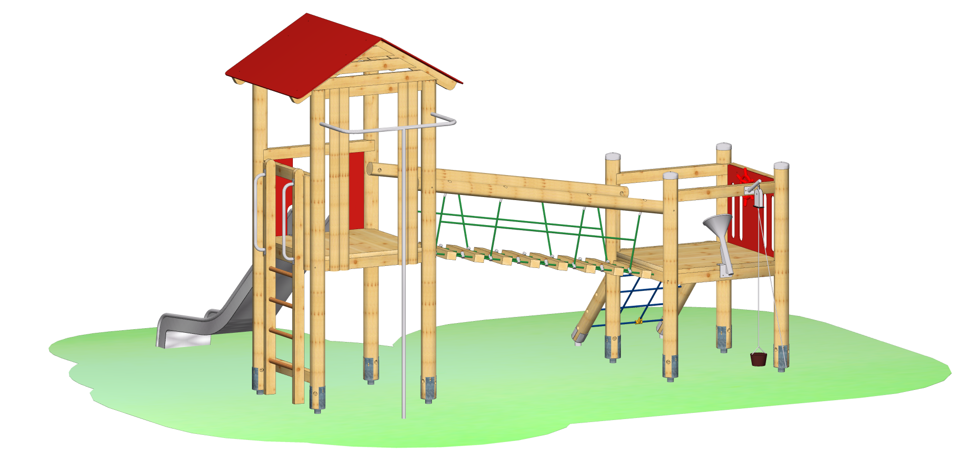 Spielkombination aus unserem System 110 mit folgenden Modulen / Anbauteilen: