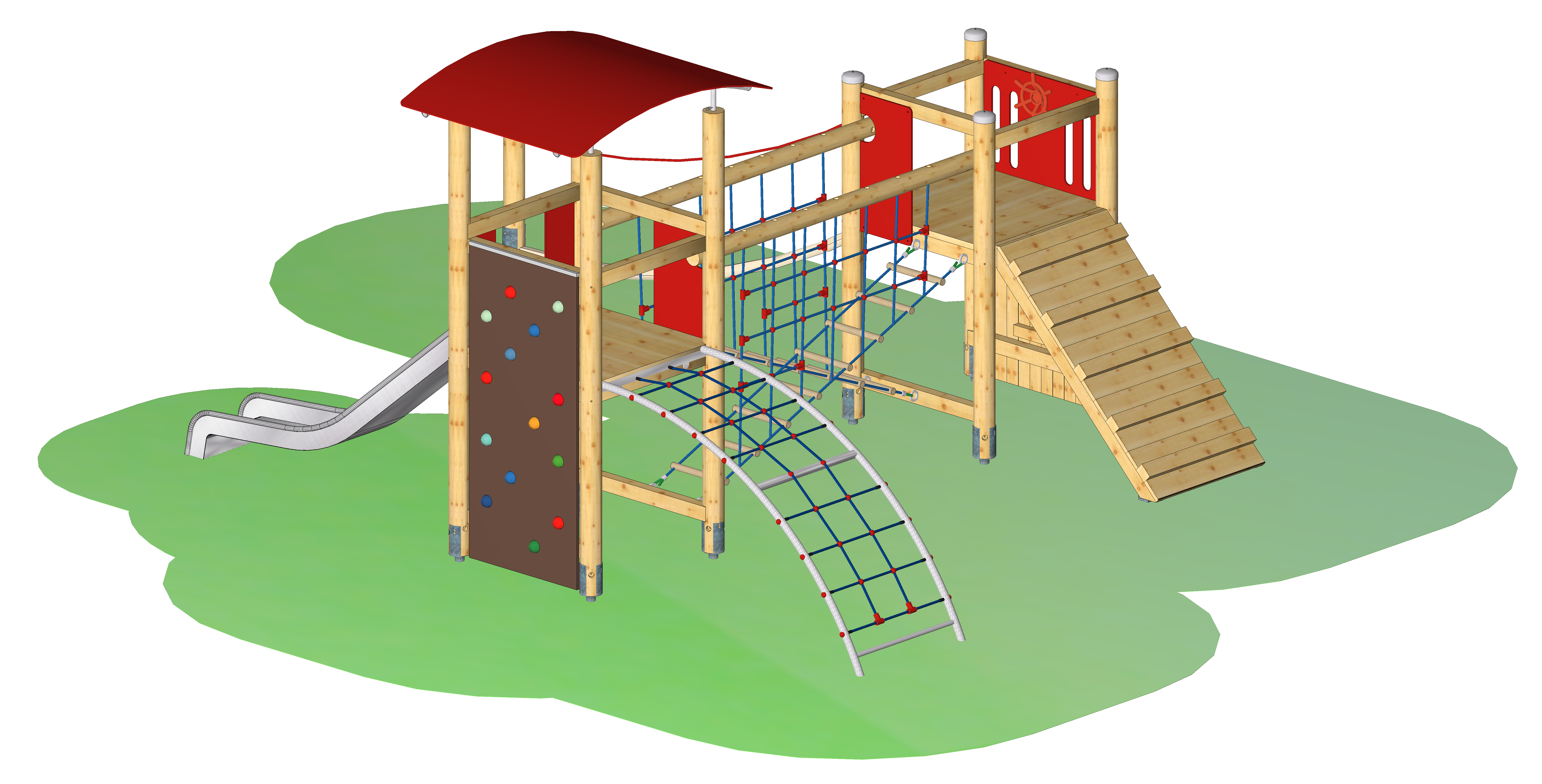 Spielkombination aus unserem System 110 mit folgenden Modulen / Anbauteilen: