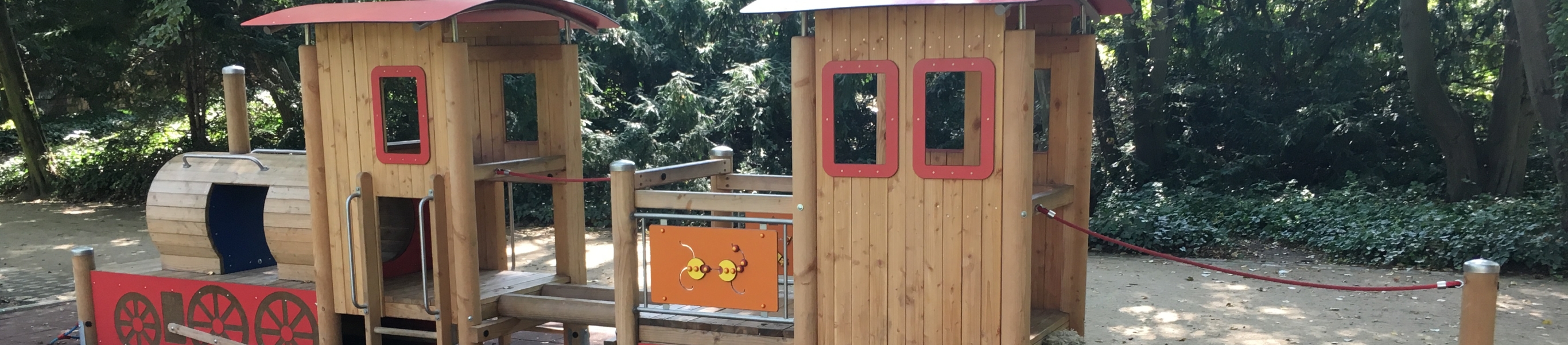Thematische Spielplatzgeräte: Spielschiff, Ritterburg, Eisenbahn