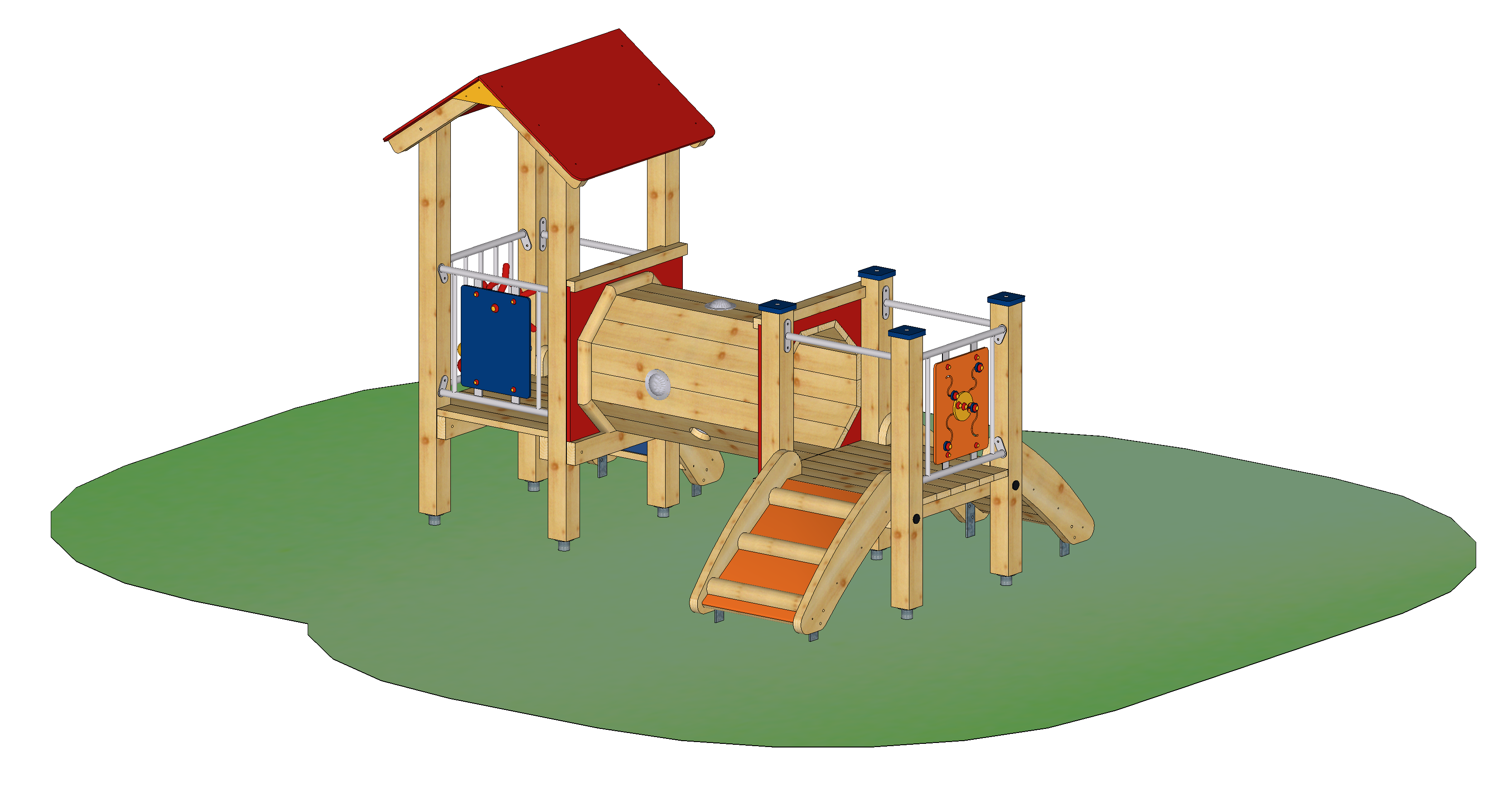 Spielgerät inkl. Pfostenschuhe und Abdeckkappen