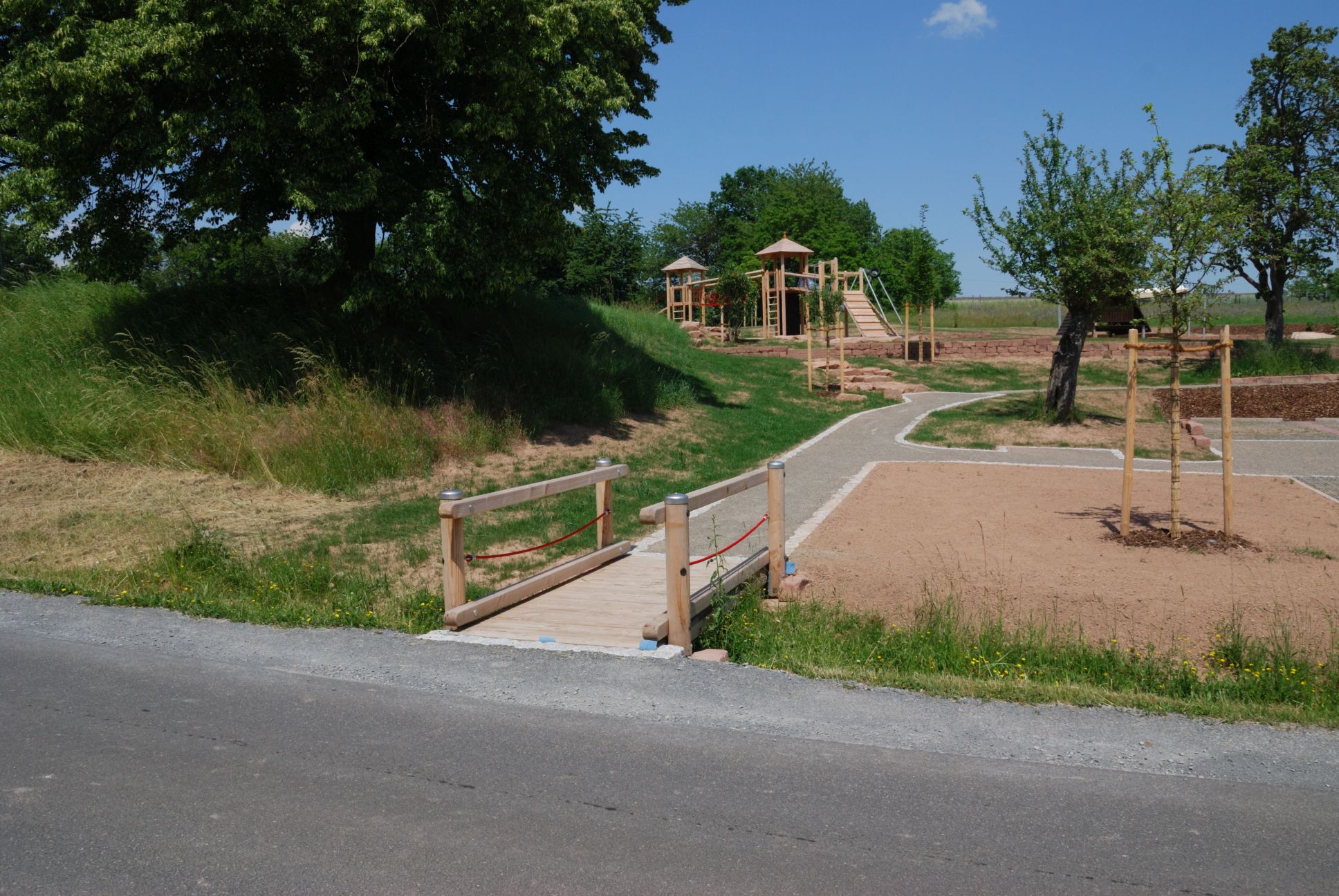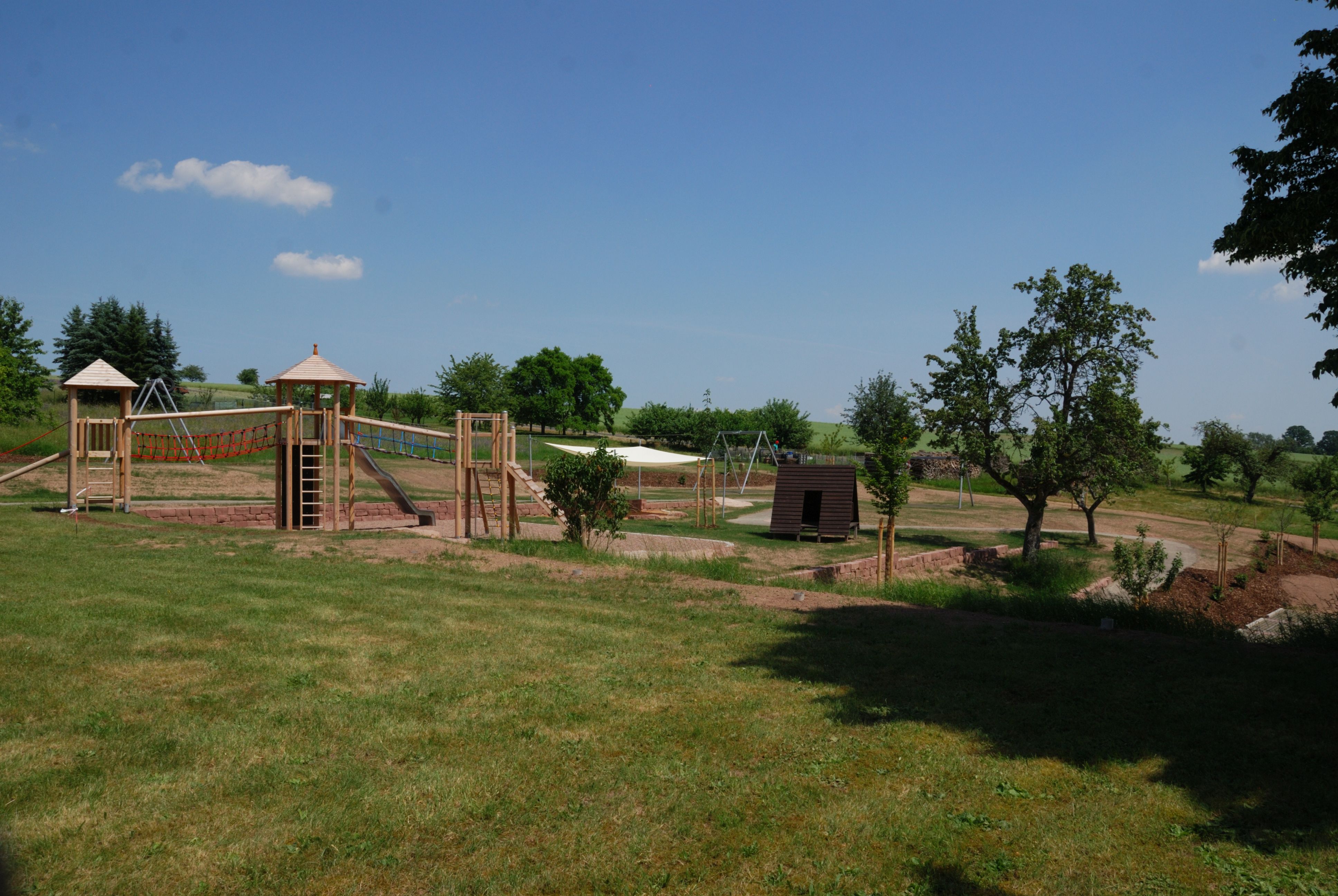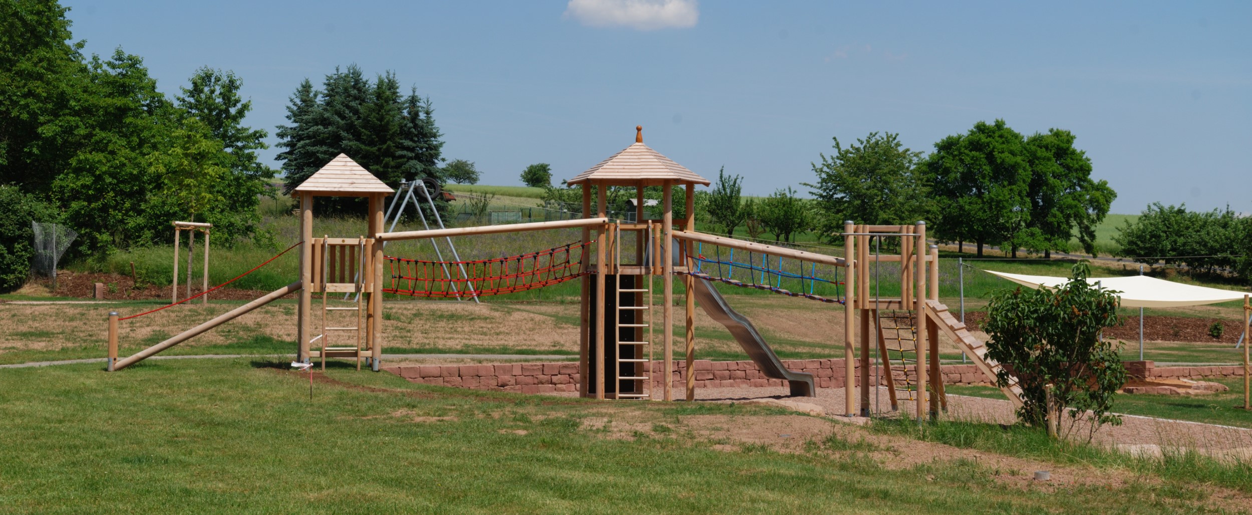 Seilbahn für Spielplätze: Konstruktion aus Stahl, feuerverzinkt.Zum Einsatz in fallendem Gelände. In ebenen Bereichen ist ein Starthügel nötig. Fahrlänge bis 40 m möglich. Anlage mit statischem Nachweis nach DIN EN 1176-4Entwicklung, Design und Konstruktion:Th. Markert und I. Svoboda (S.H. Spessart Holzgeräte GmbH)Statische Berechnung: Büro Dr. Anvikar, WürzburgKonstruktion:Stahlständer aus Rundrohr 82,5 x 3,2 mm, Querträger aus Quadratrohr140 x 140 x 5 mm, Stahlseil als Litzen-Spiralseil, 10 mm Durchmesser.Anschlag am Startbock: Anschlagdämpfer aus EPDMAnschlag am Zielbock: BremsfederSeilbahnbetrieb:Unsere Seilbahn ist ein attraktives und gut funktionierendes Spielgerät mit erfahrungsgemäß hoher Spielfrequenz. Laut DIN EN 1176 ist die Höchstgeschwindigkeit der Seilbahn auf 7m/s begrenzt. Deshalb bitten wir, unsere Angaben in unserer Montage-Anleitung zu beachten. Montagehinweise:Das Gelände ist so zu gestalten, dass der Abstand zwischen Seilbahnsitz und Boden, unter Belastung (69,5 kg nach DIN EN 1176-4) an keiner Stelle weniger als 350 mm beträgt. Um eine geeignete Fahrgeschwindigkeit von höchstens 7 m/s zu erreichen, empfehlen wir nach Tabelle (unten) folgende Werte: Länge der SeilbahnHöhenunterschied der Stahlständer20 m80 cm30 m130 - 150 cm40 m190 - 210 cmLieferumfangStart- und Zielstation aus feuerverzinktem Stahldrehungsarmes, flexibles, viellitziges StahlseilLaufkatze mit EdelstahlgehäusePendelsitz mit schlauchüberzogener Kette aufgehängt, Sitz aus Gummi mit Stahleinlage, prallgedämpfte KanteEinmann-Spannvorrichtung an derStartstation, Seilschloßbefestigung an der ZielstationSicherheitsdrahtseilklemmenSchraubenBremsfeder, Anschlagdämpfer aus EPDMAnleitungen für Montage und Wartung
