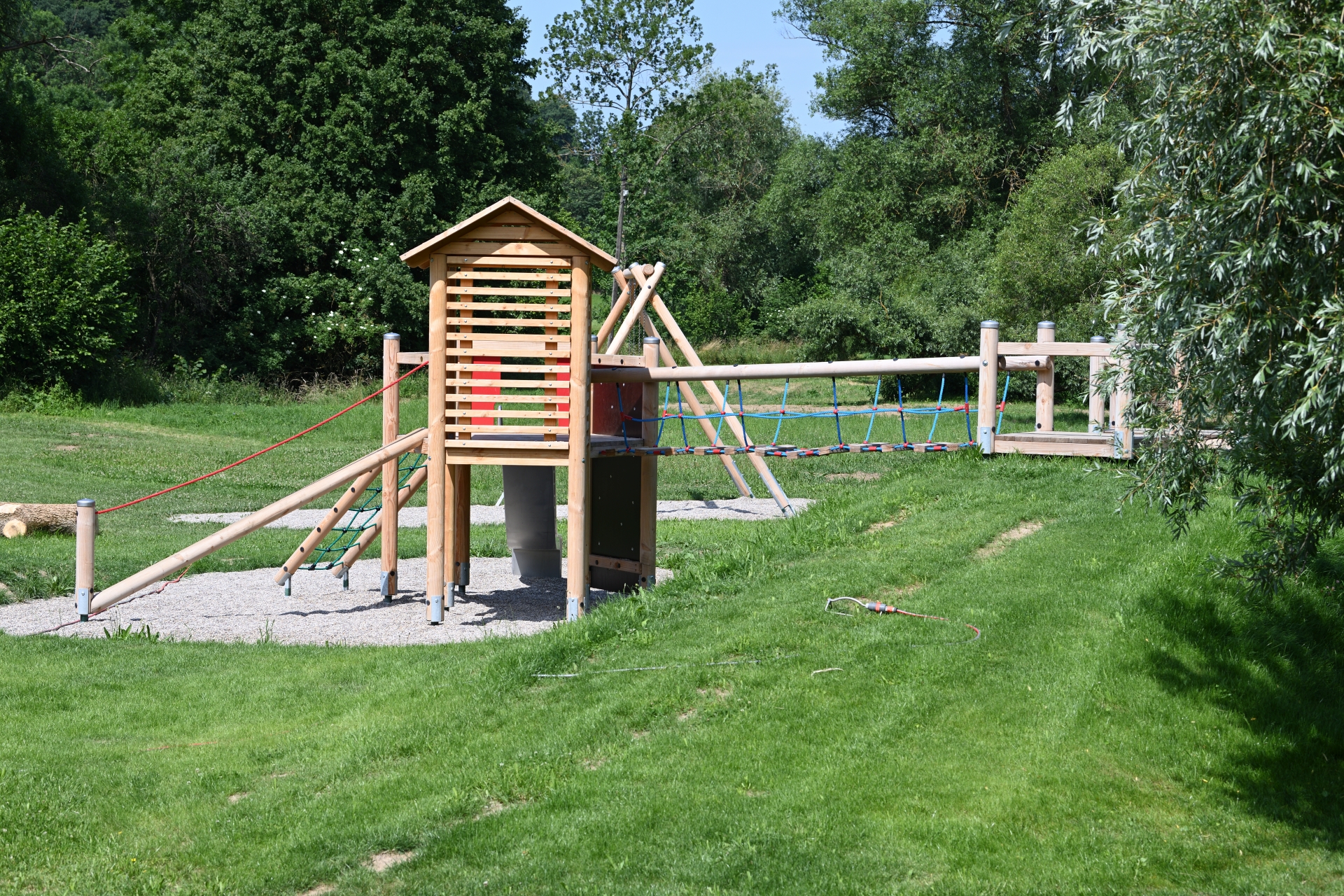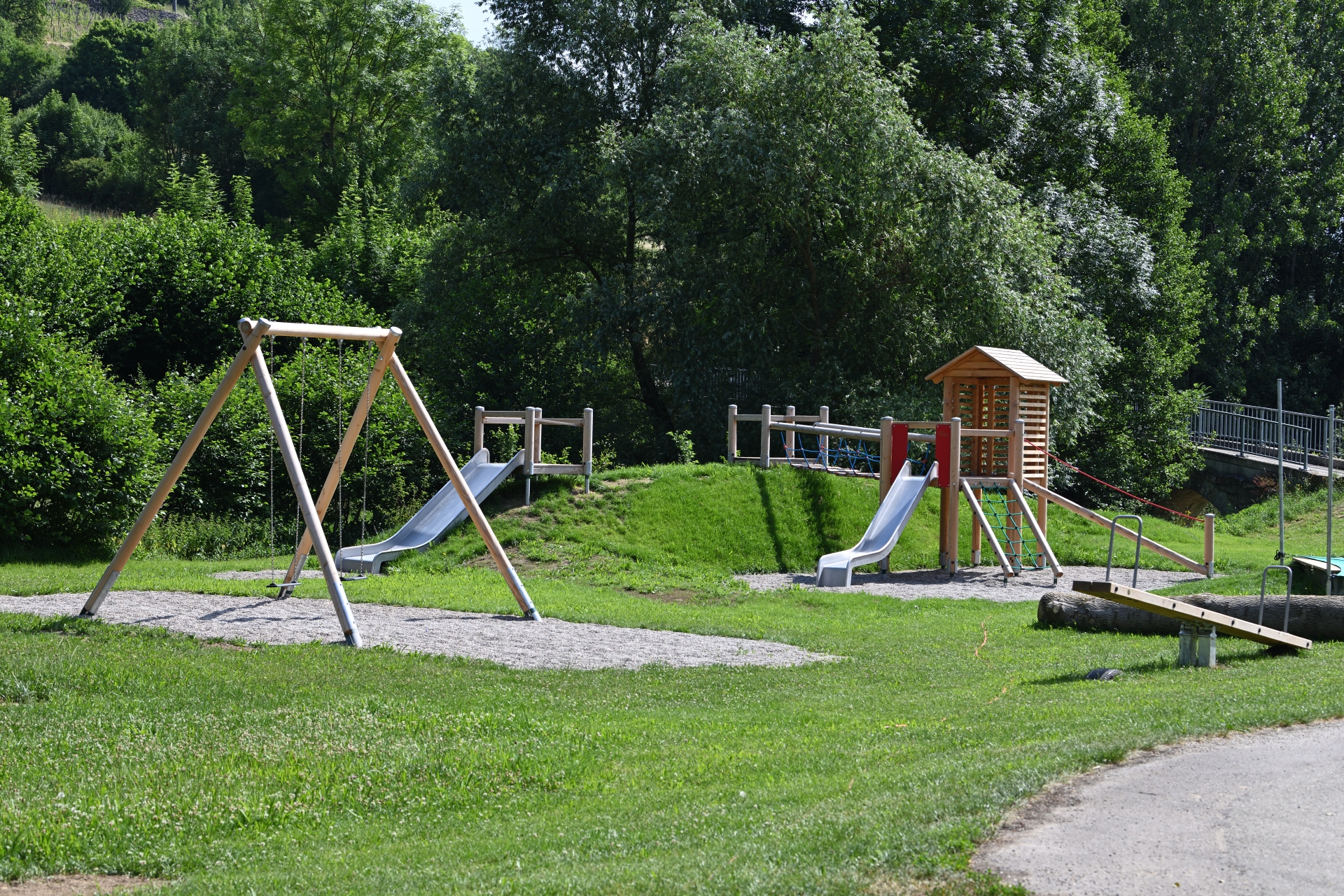 Direkt am Taubertalradweg - auf der Grenze zwischen Bayern und Baden-Württemberg liegt dieser schön gestaltete Spielplatz, der unter anderem eine Spielkombination mit Hügelanbindung beinhaltet.