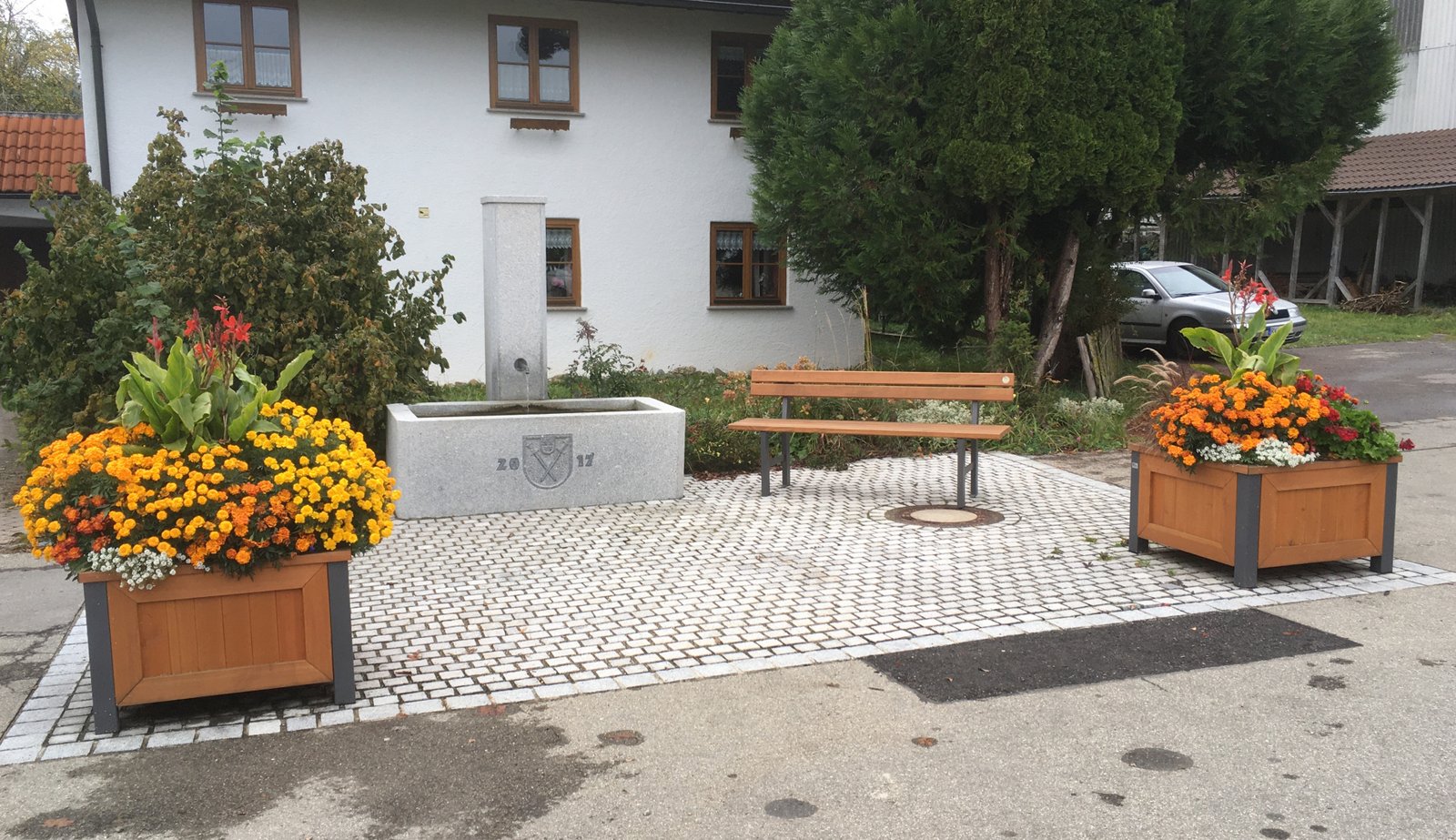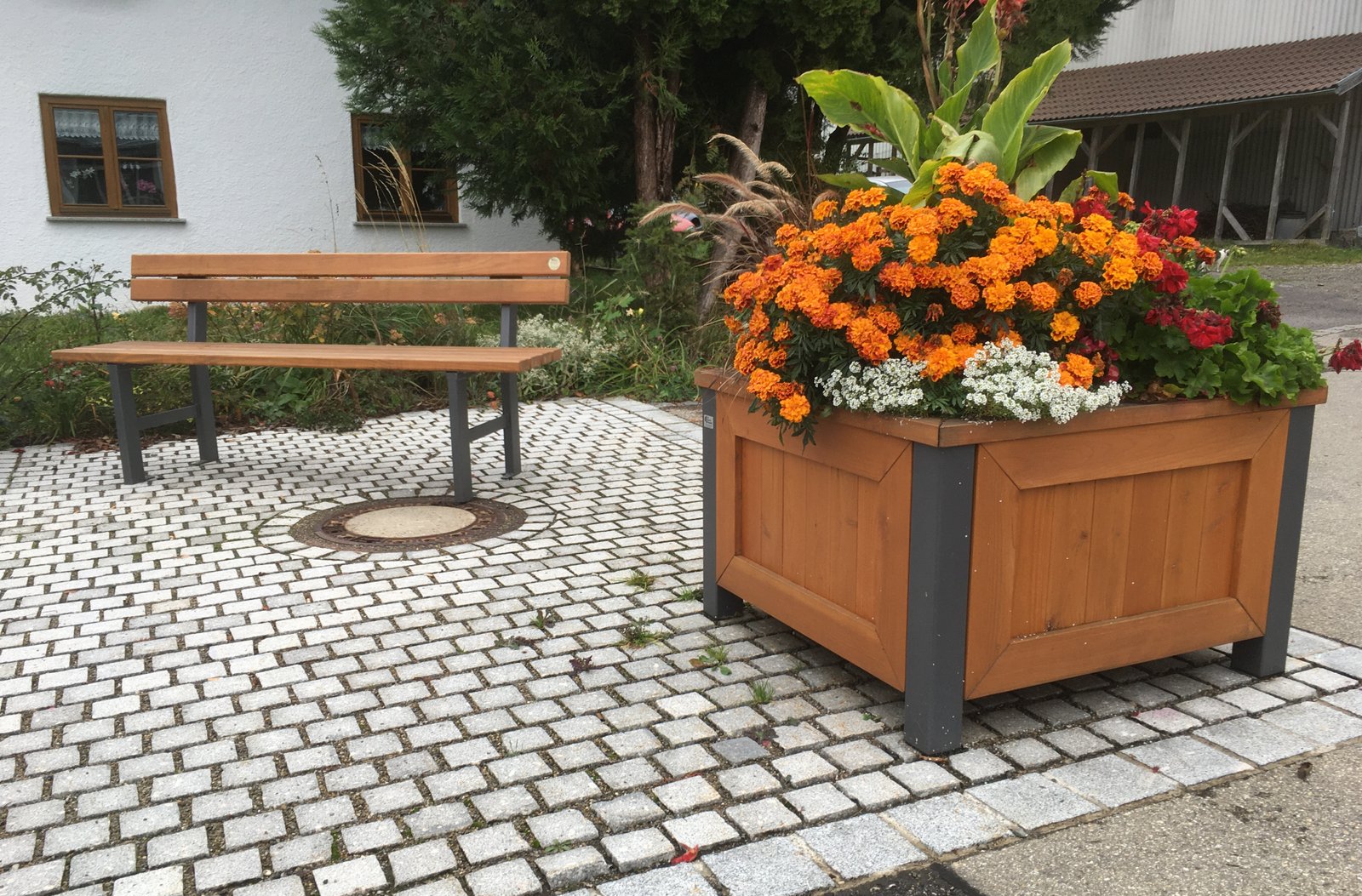 Pflanzcontainer in der Ortsmitte von Rohrdorf bei Isny im Allgäu