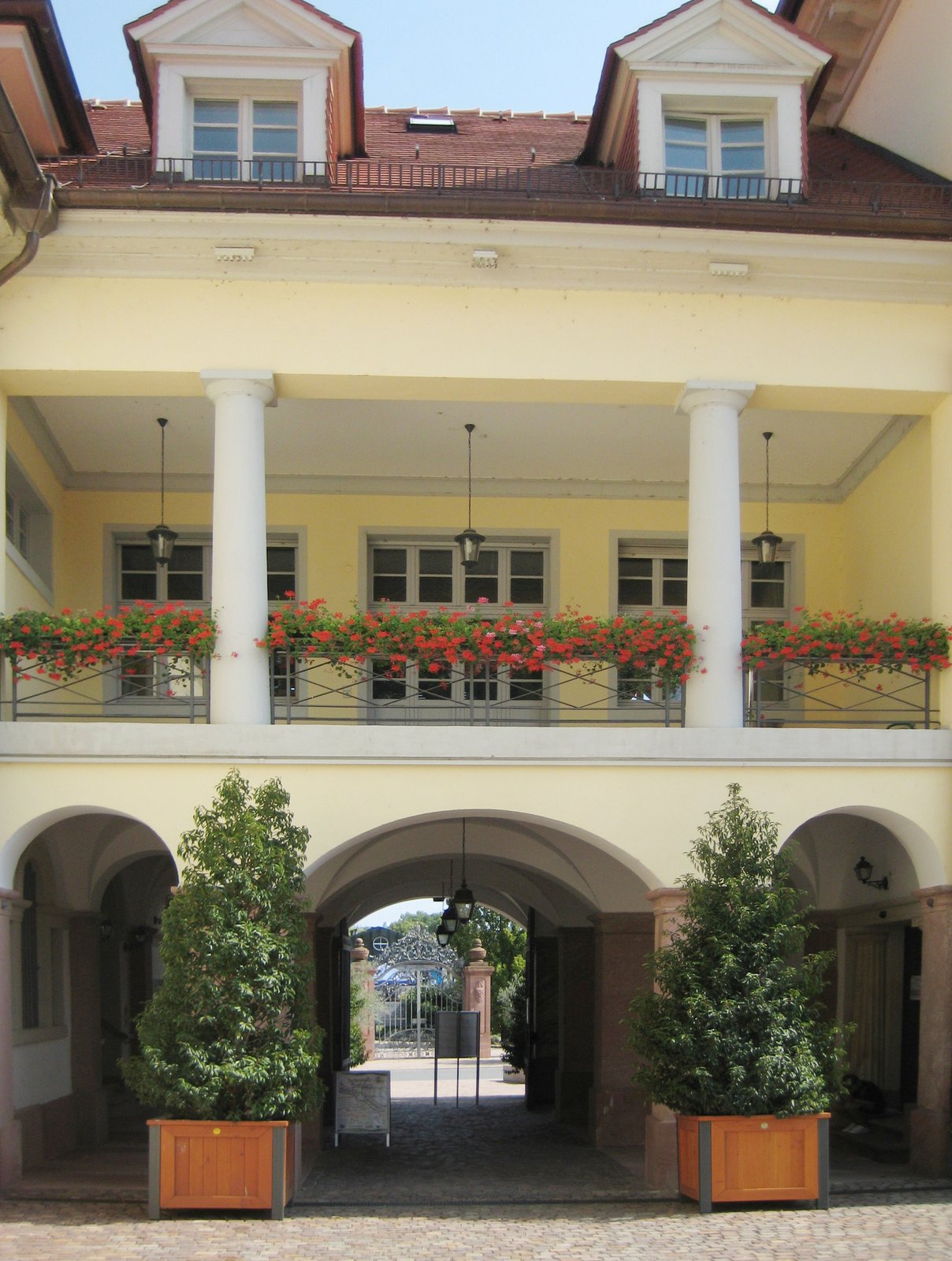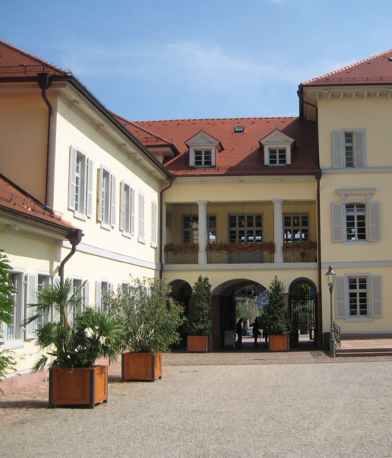 Der Bereich am Schlosseingang wurden durch große Pflanzen in Containern verschiedener Größen gestaltet: