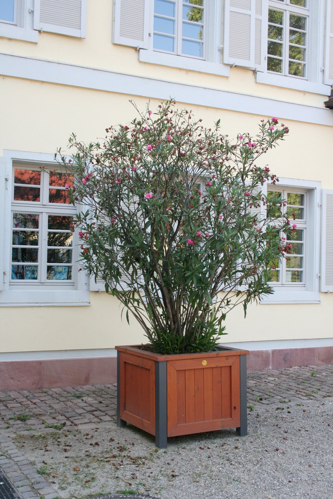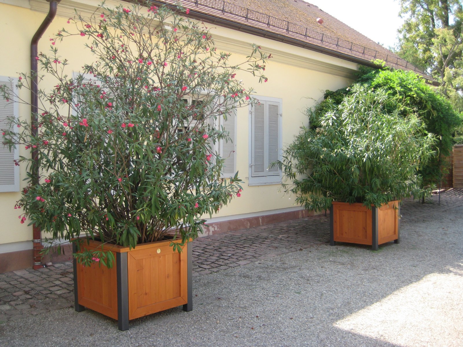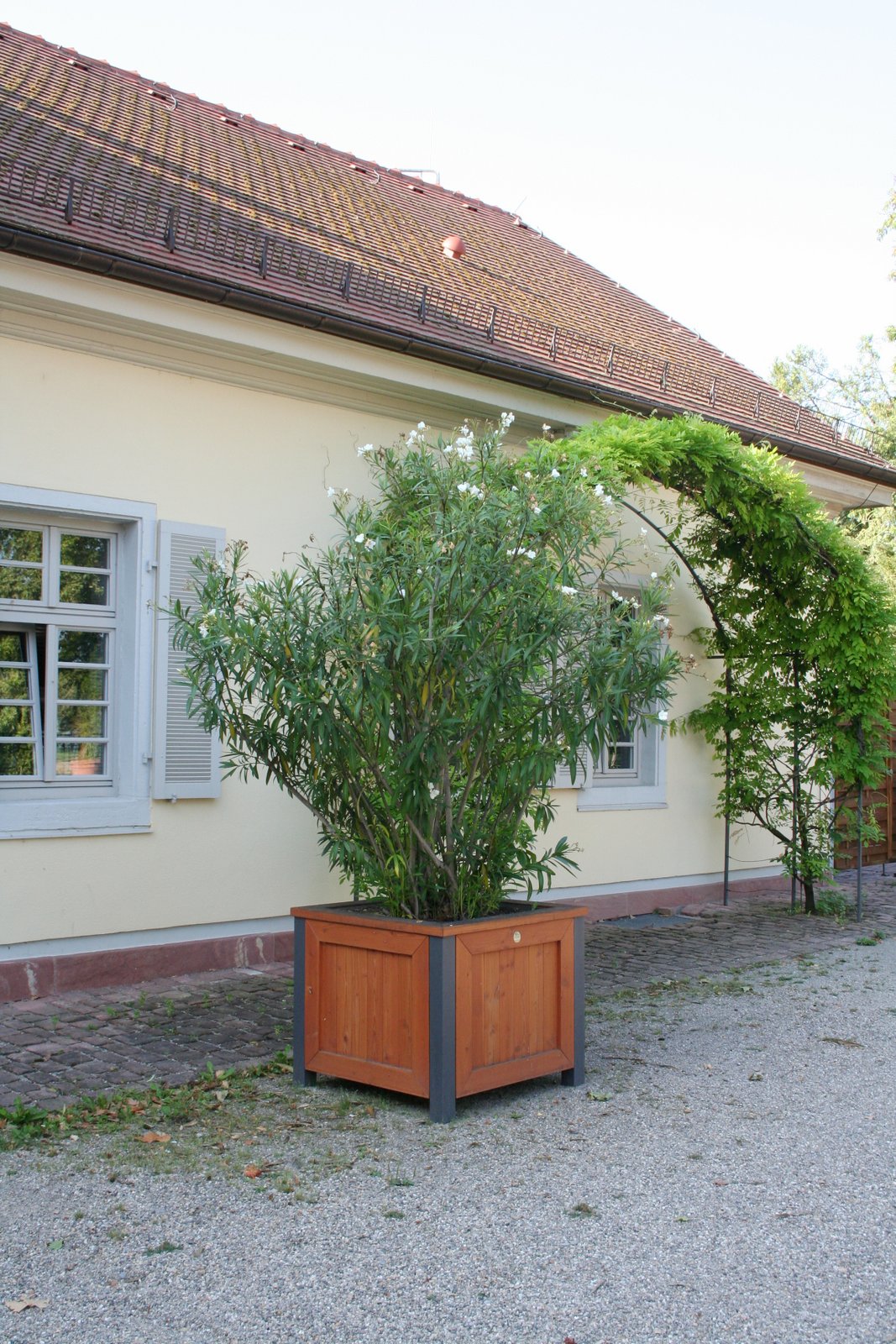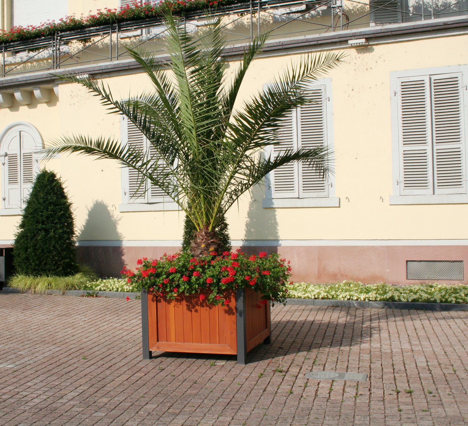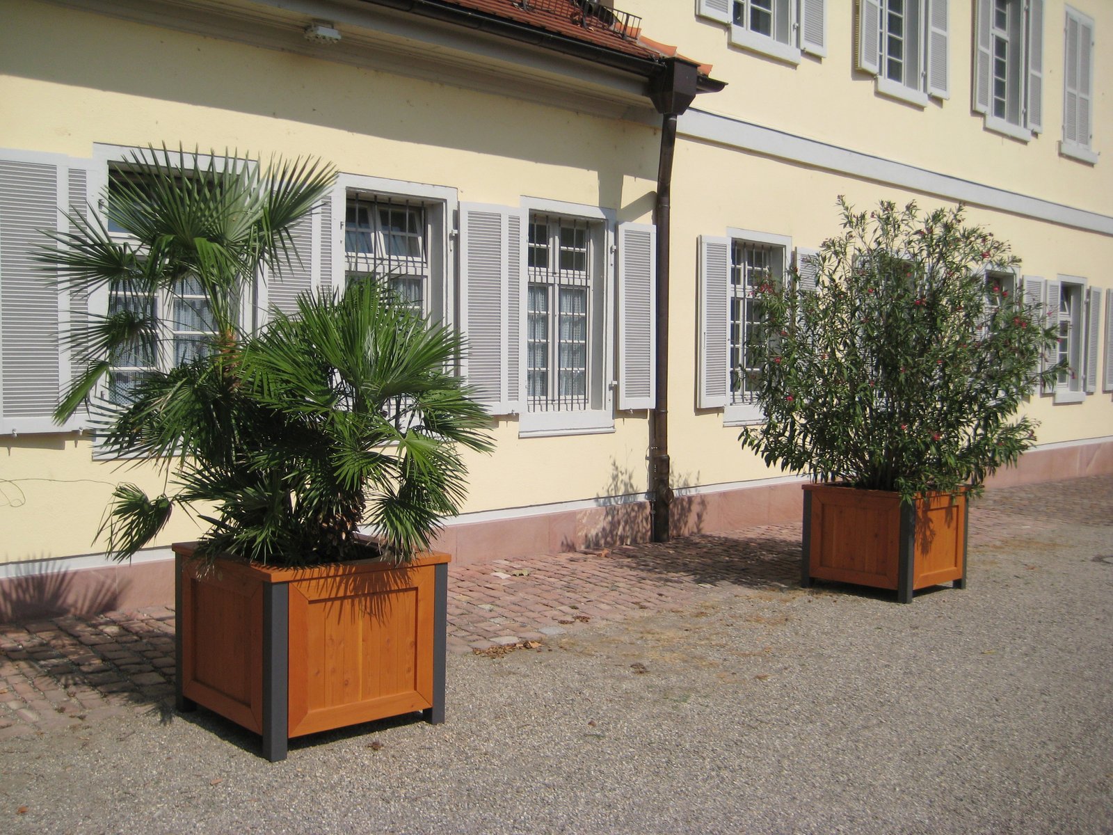 Pflanzcontainer 100 x 100 cm, Höhe 85 cm und Pflanzcontainer 120 x 120 cm, Höhe 85 cm.