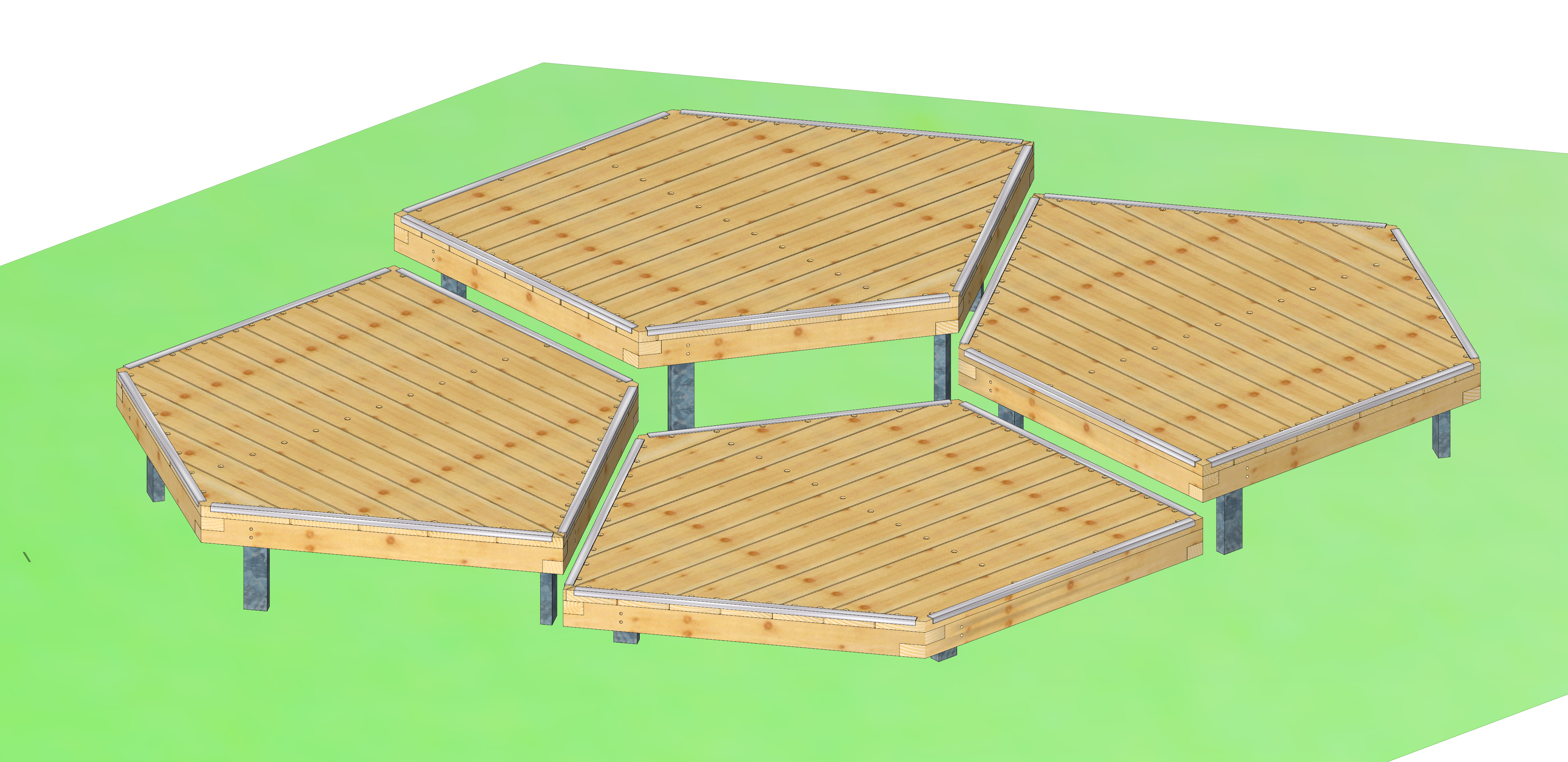 Podeste in Fünfeckform zur variablen Zusammenstellung.