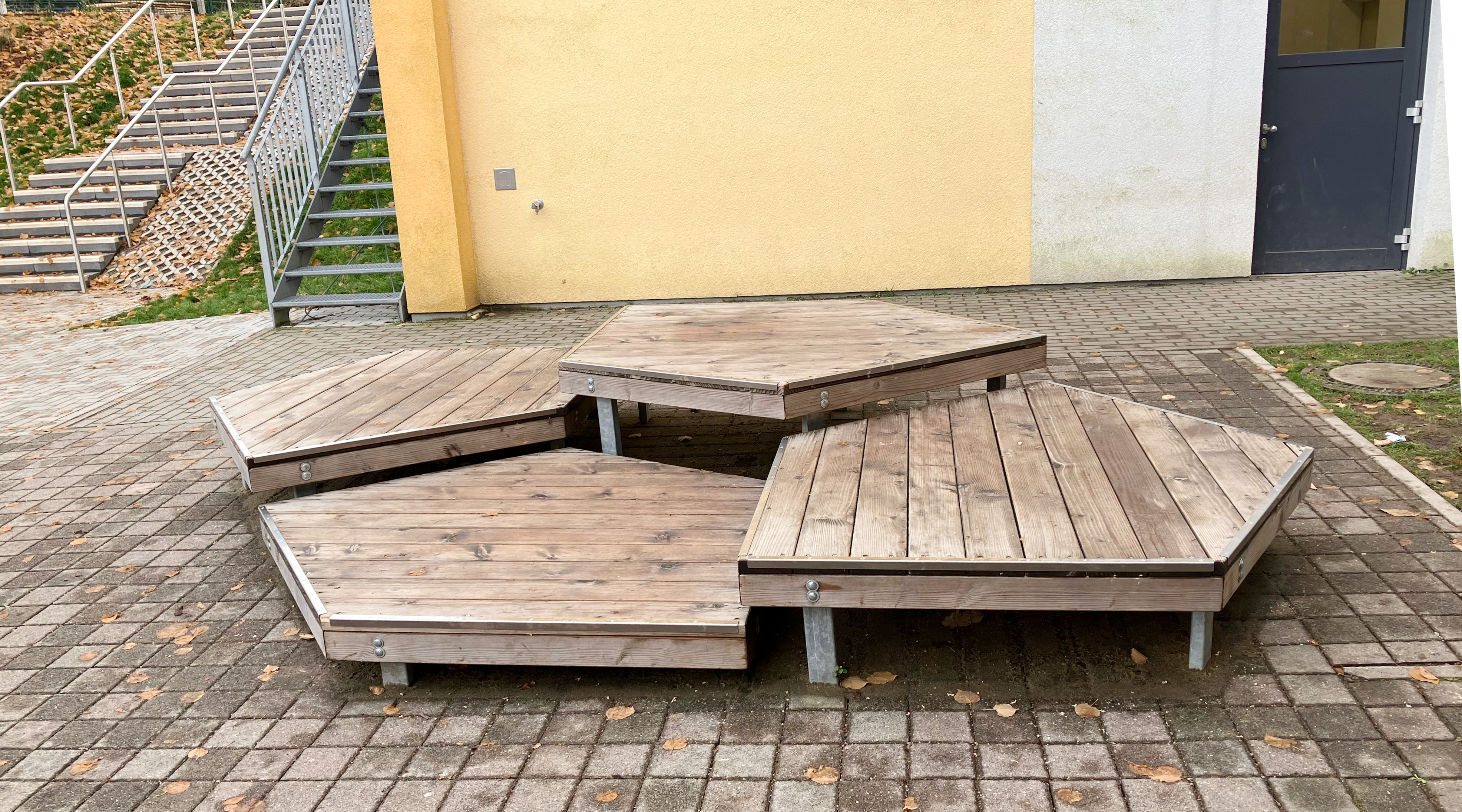 Treffpunkt im Schulhof Podeste in Fünfeckform zur variablen Zusammenstellung. 4 Stück... mehr